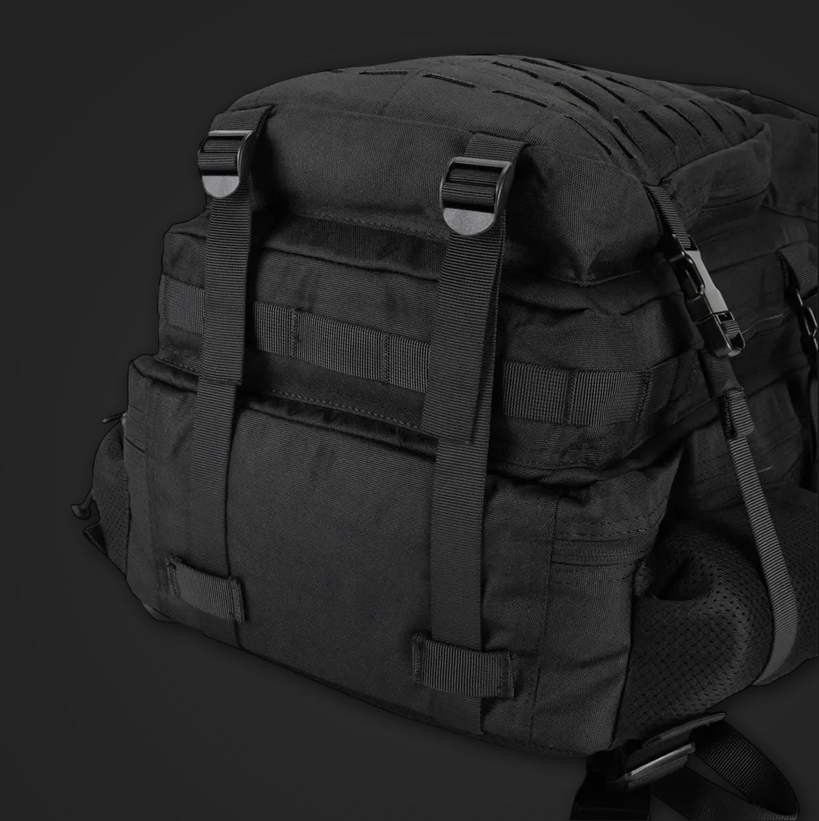 - Diseño MOLLE distintivo cortado con láser.